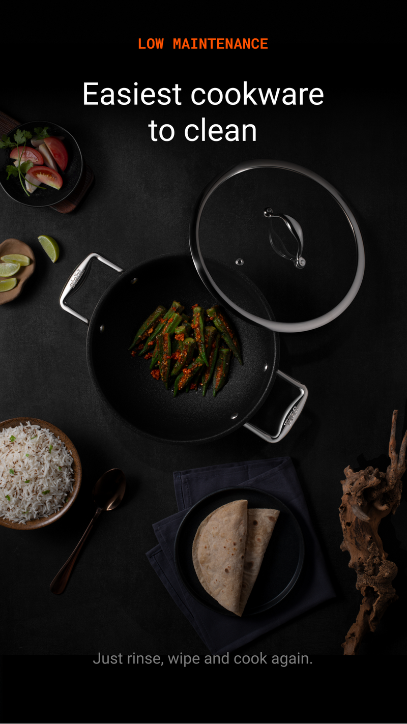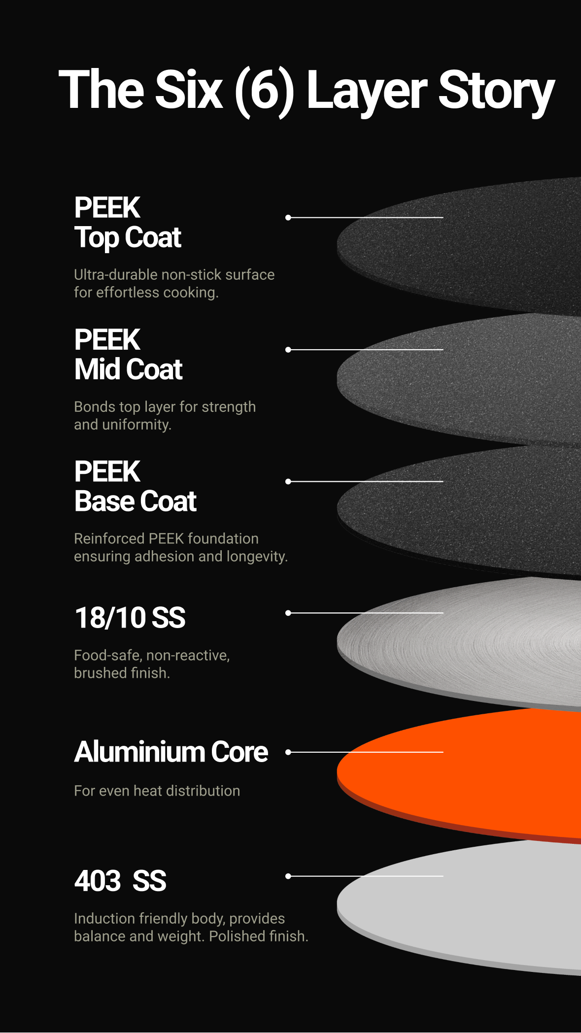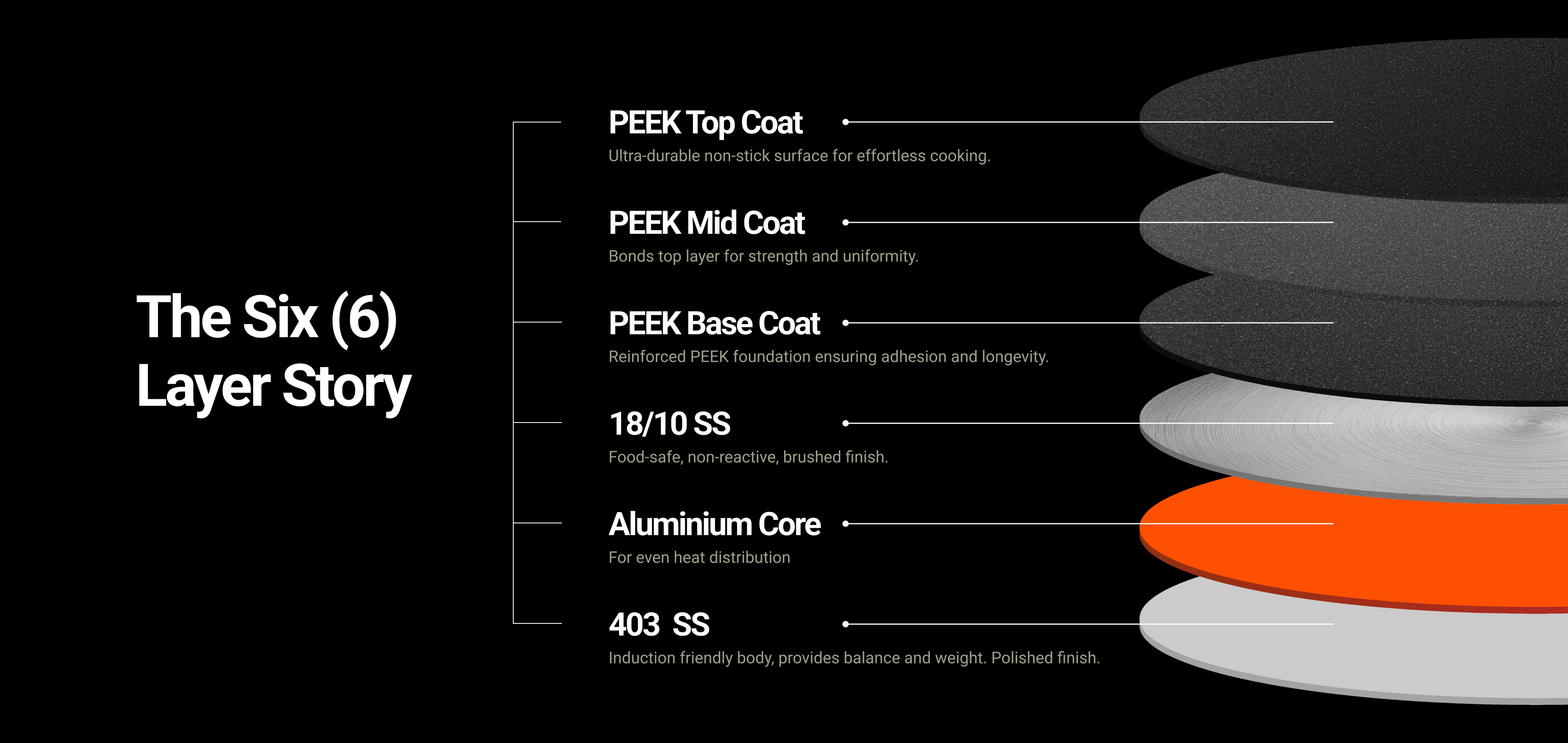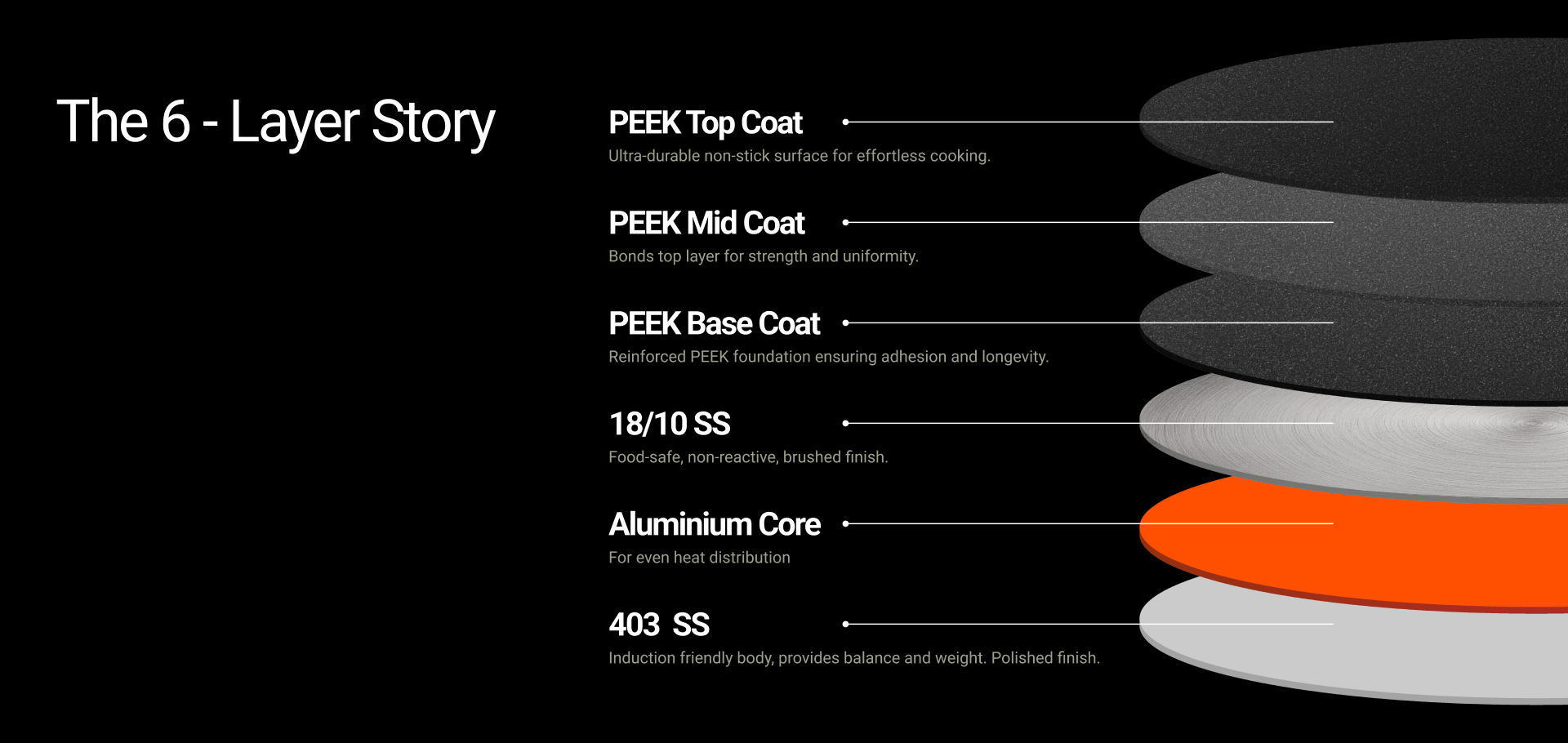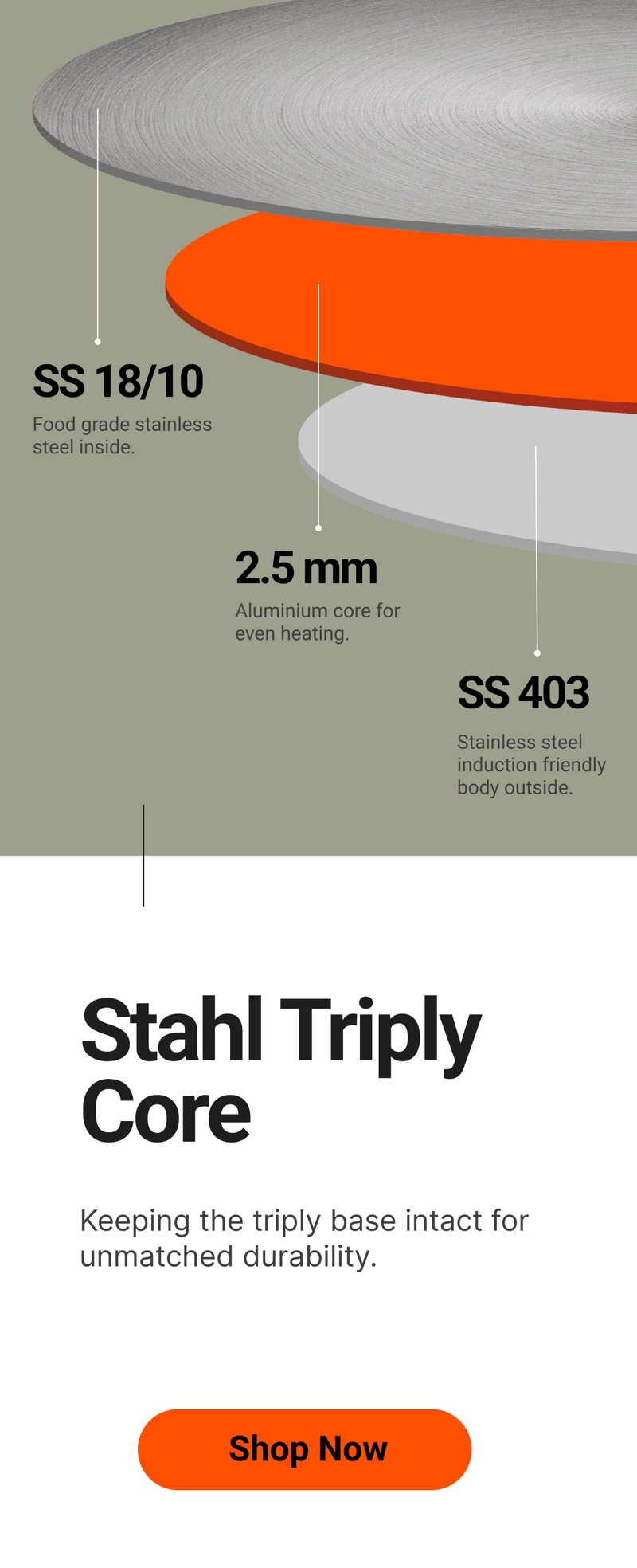 The Artisan Schild is India’s first no-scratch, PEEK-reinforced cookware range. It combines Triply stainless steel with PEEK performance technology, making it tougher, longer-lasting, and safer than traditional non-stick cookware.
