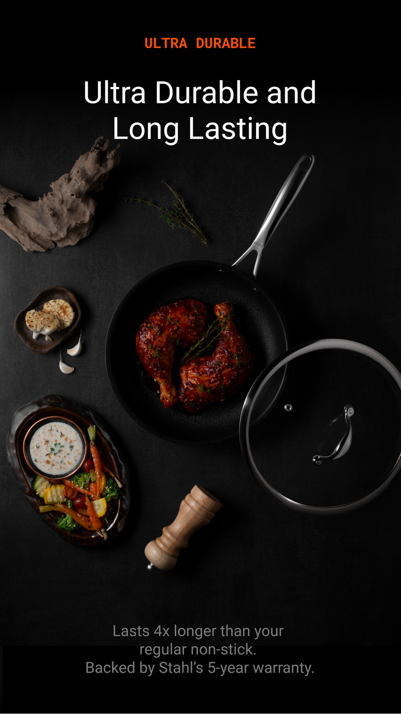 The range is built to last a minimum of 5 years, far beyond the 1–2 year lifespan of standard non-stick. It maintains its easy-release surface and appearance even with everyday cooking.